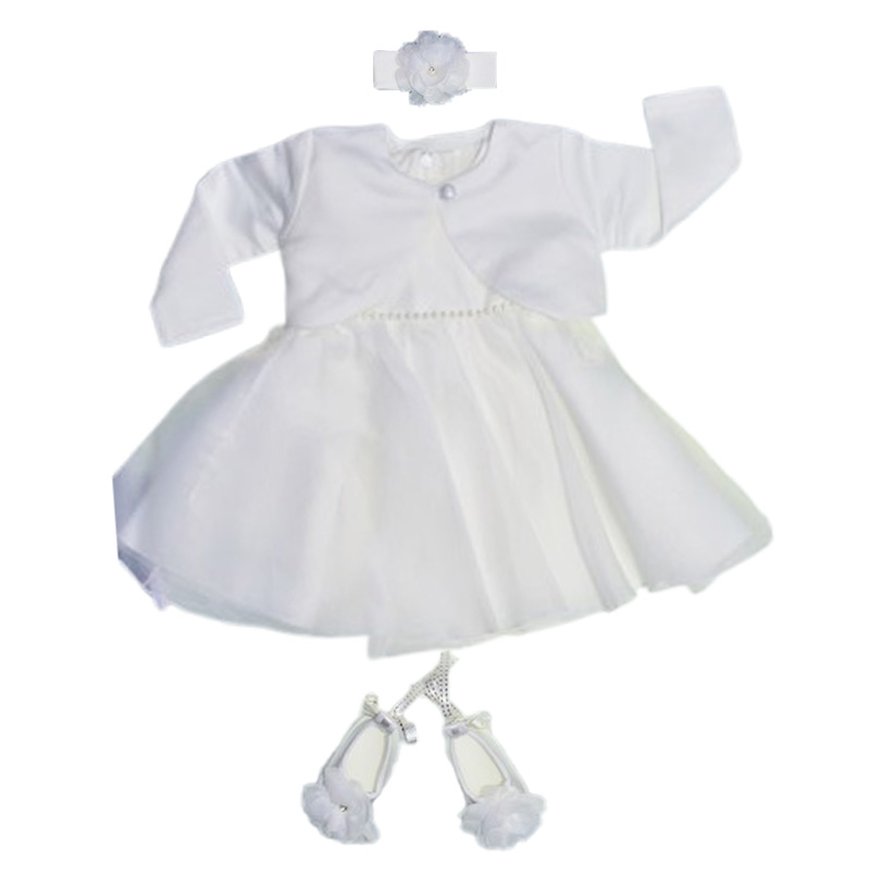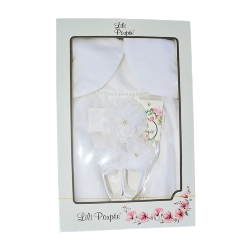 Mini Junior Set 4 piese rochie eleganta din satin, pentru botez, pentru fete, Mini Junior 3665-56-62, Alb