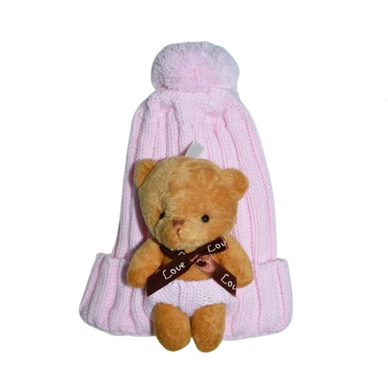 Mini Junior Caciula cu ursulet de plus detasabil Mini Junior CLA-MJ8, Roz